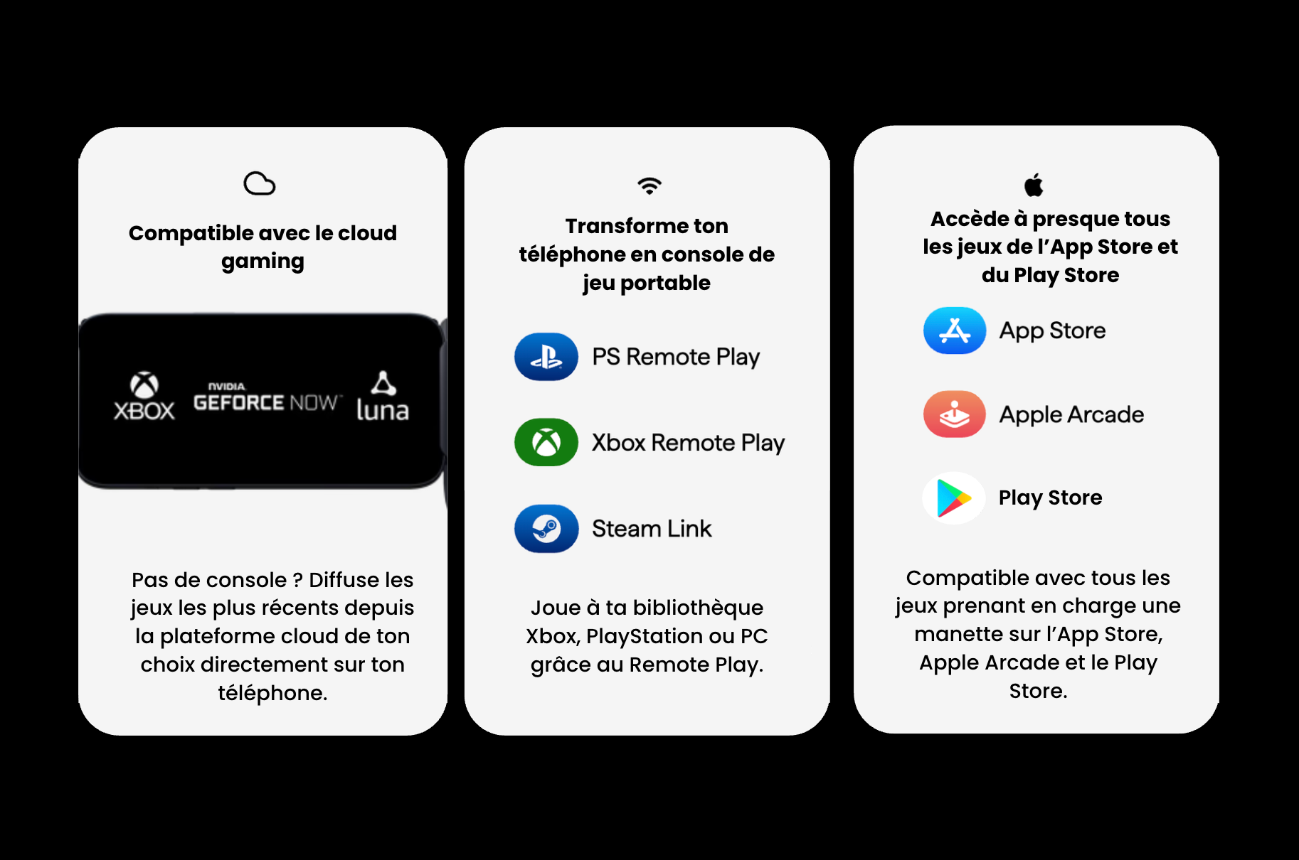 Elle fonctionne aussi avec les jeux en streaming et les plateformes de cloud gaming.